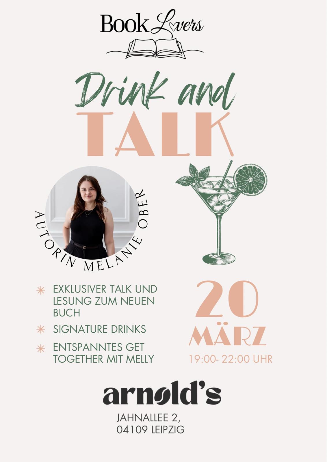 Freu dich auf eine exklusive Lesung aus meinem neuesten Buch, einen offenen Talk übers Schreiben, Geschichten & Gefühle – und ganz viel Zeit zum persönlichen Quatschen mit mir.